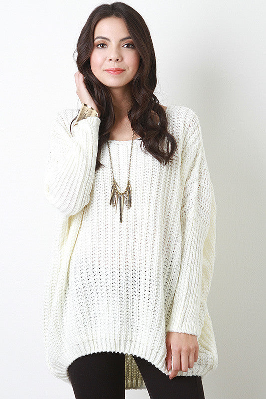 Featuring a round neckline, full length sleeves, woven knit fabric, and curved hem. Accessories sold separately. 55% Cotton, 45% Acrylic.