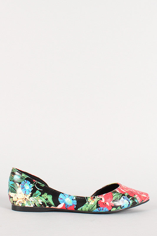 Breckelle Floral Pointy Toe Sweetheart Flat