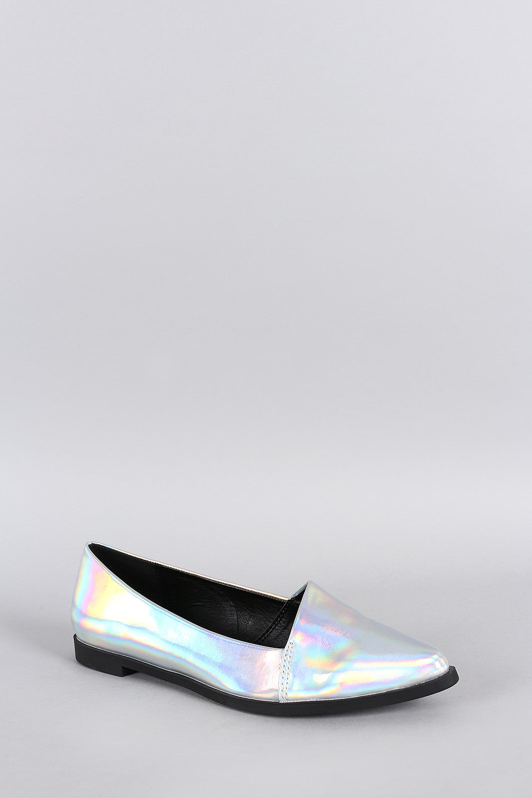Hologram Asymmetrical Pointy Toe Loafer Flat