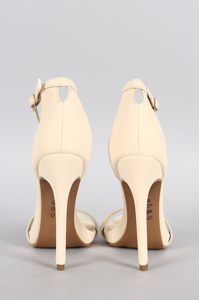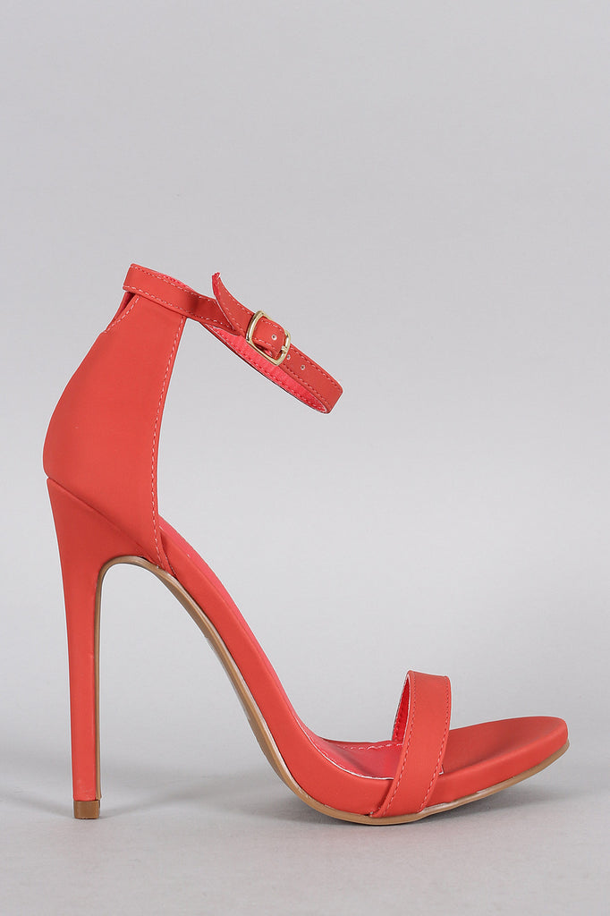 This classic open toe box with a single strap across the vamp. Features an ankle strap adjustable closure. Finished with a rear back closure that features a cute cutout. Designed with summer colors.