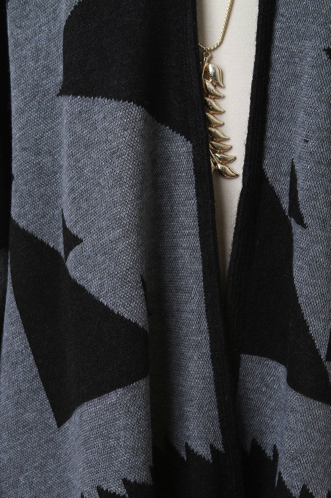 This over sized woven cape is inspired by south of the border designs, featuring geometric prints throughout. With the front cascading, the cape has a super soft and relaxed feel. Accessories sold separately.