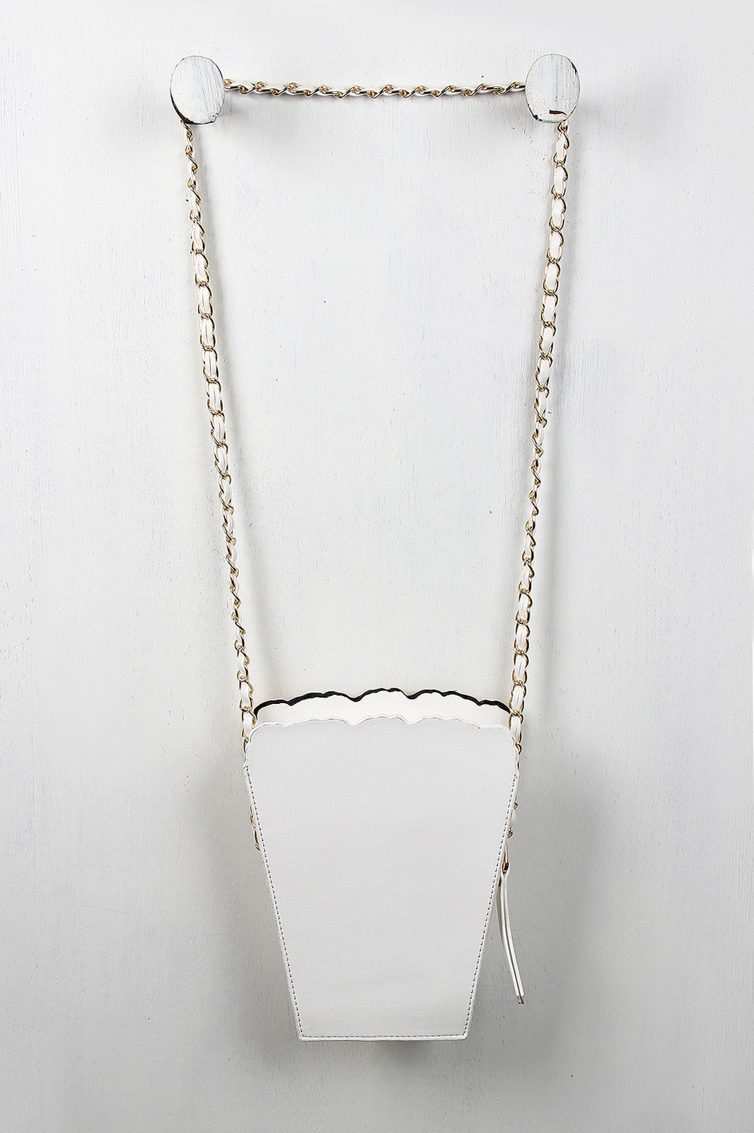 Add a pop of style to your outfit with this popcorn bag ! Constructed from colorful leatherette with stitching detail, zippered top, and threaded chain shoulder strap. Finished with fully lined interior and one slip pocket.