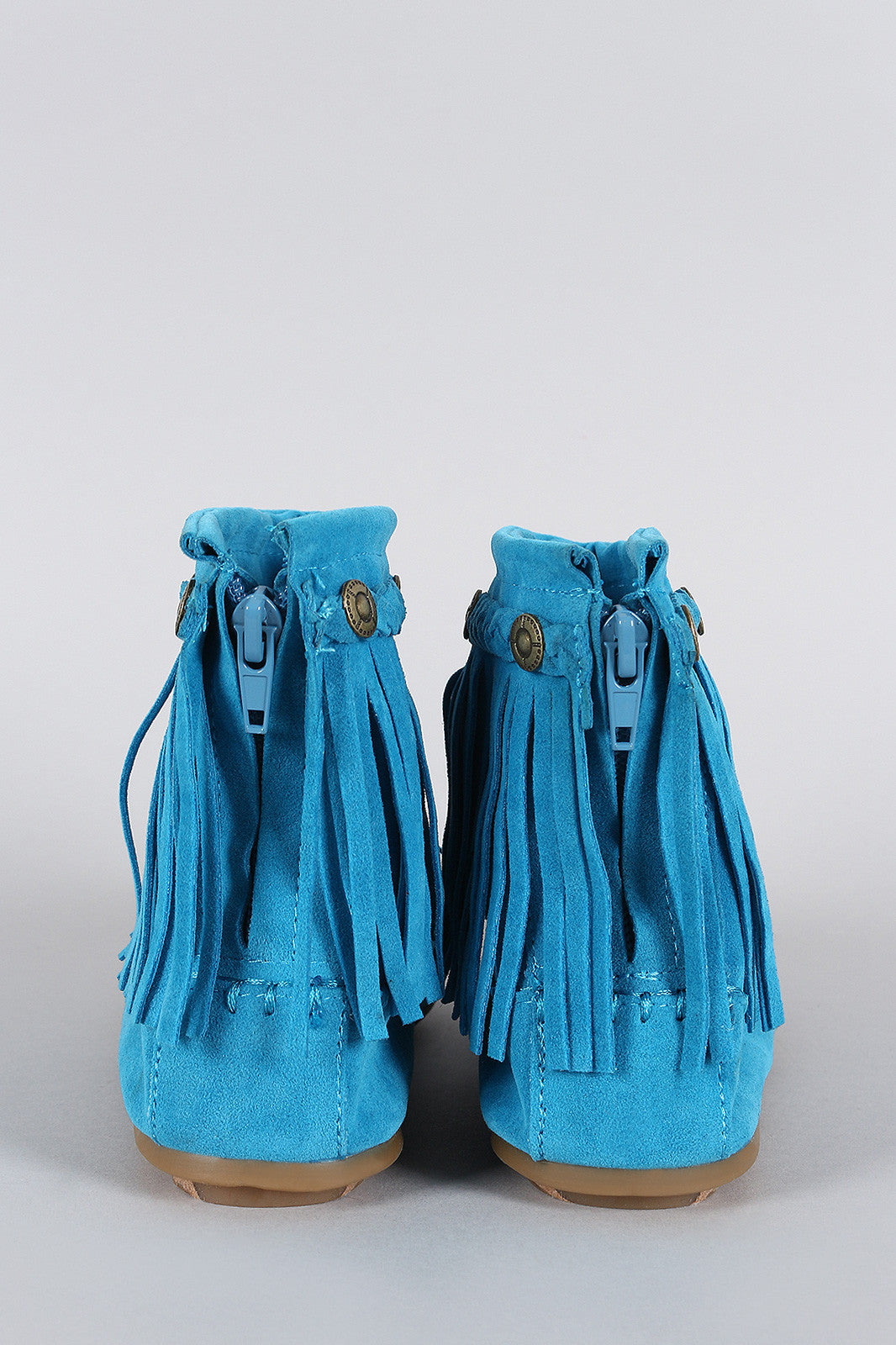 This stylishly hot fringe designs at ankle, cushioned insole, and rear zipper closure for easy on/off.