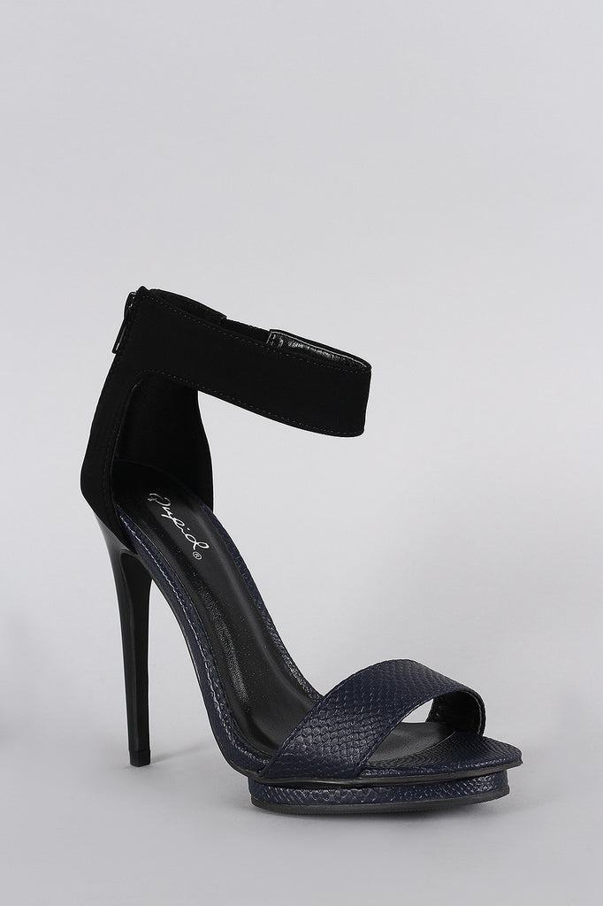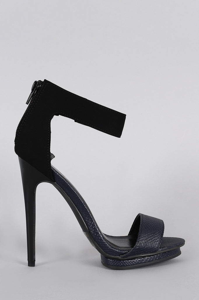 Qupid Sleek Contrasting Snake Open Toe Heel