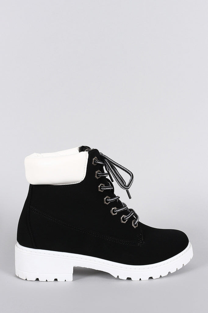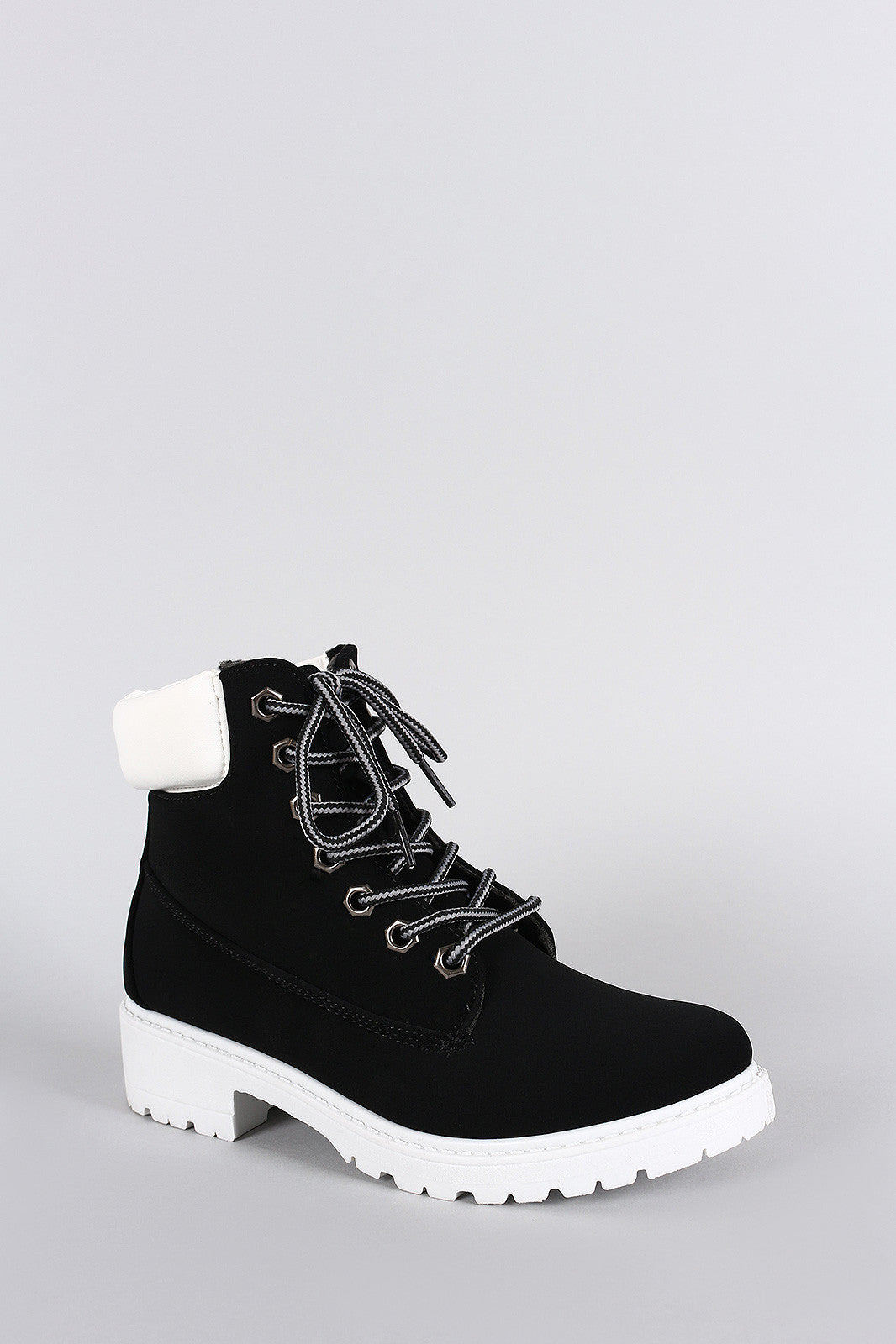Two Tone Round Toe Lace Up Lug Sole Work Ankle Boots