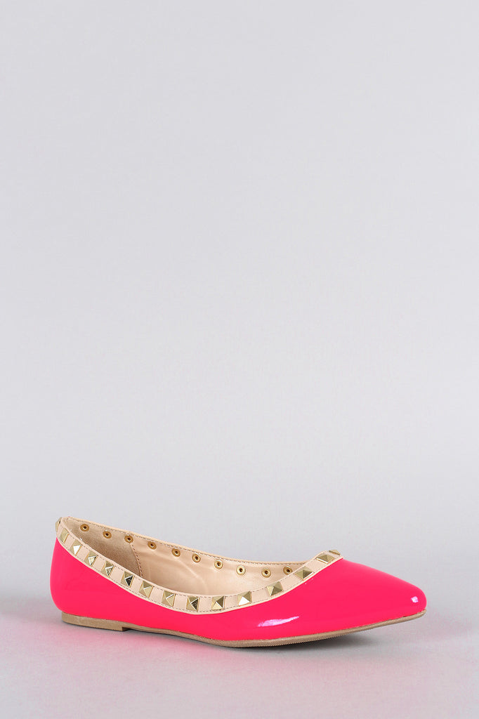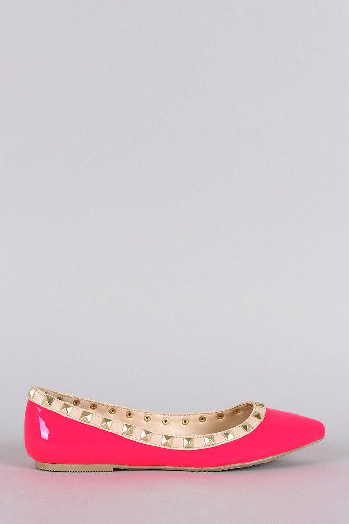 Wild Diva Lounge Studded Pointy Toe Neon Flat