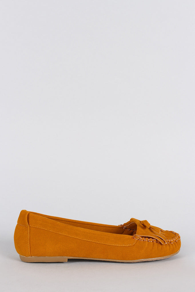 Bamboo Suede Bow Fringe Slip On Moccasin Flat