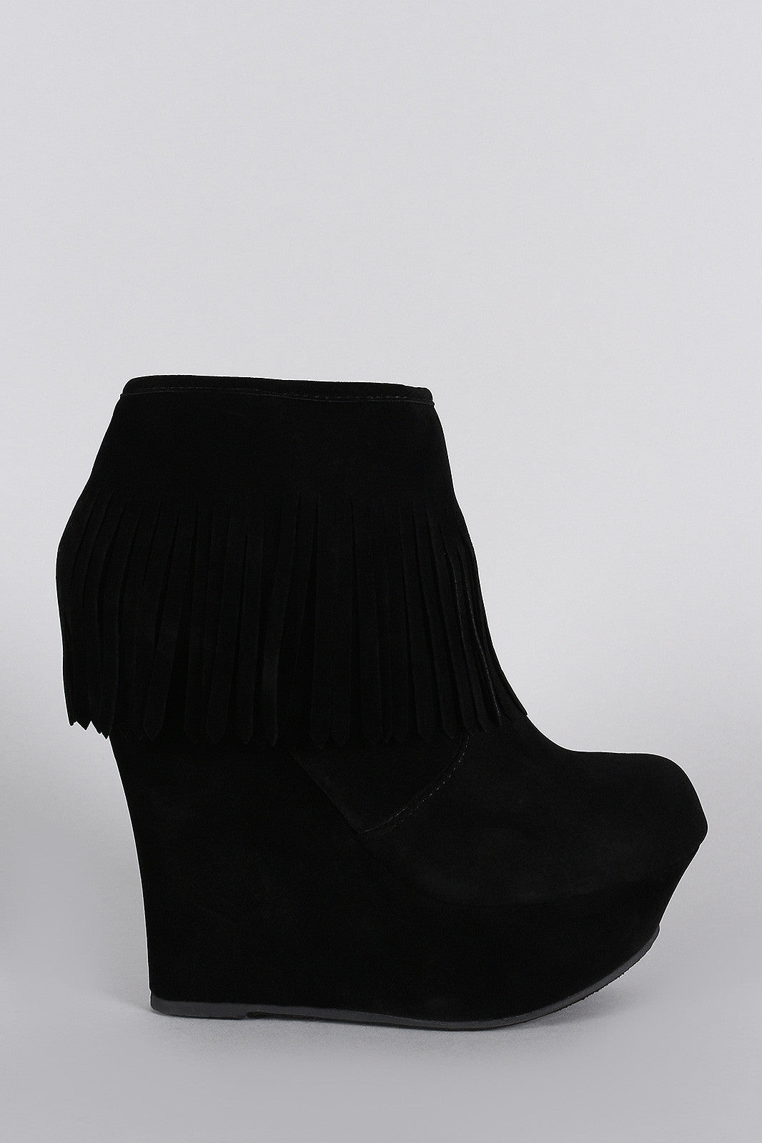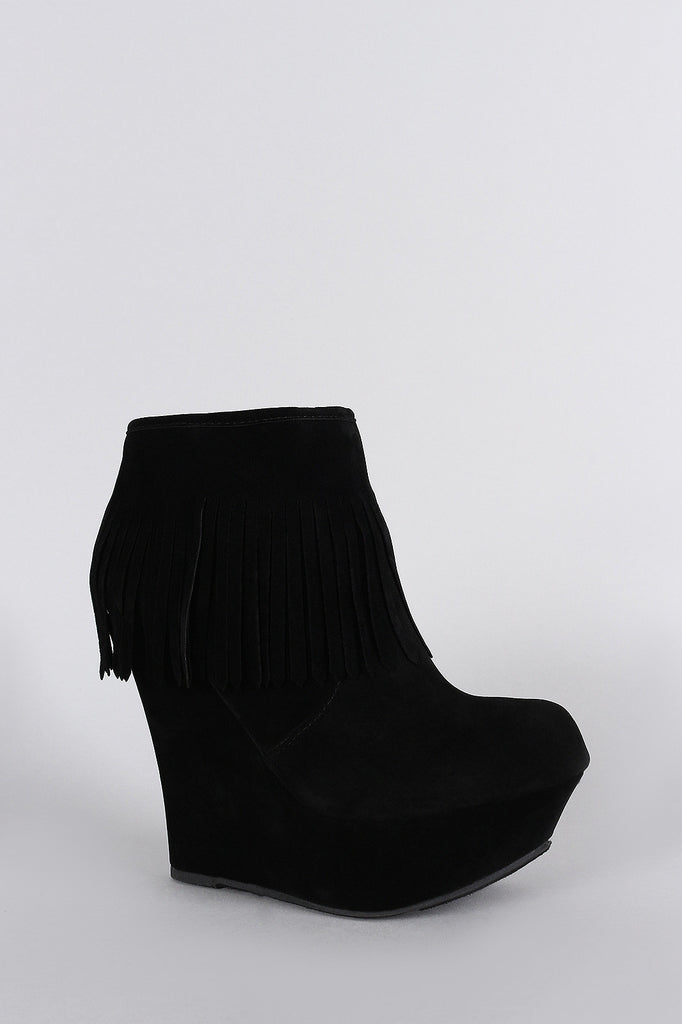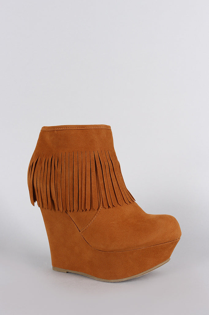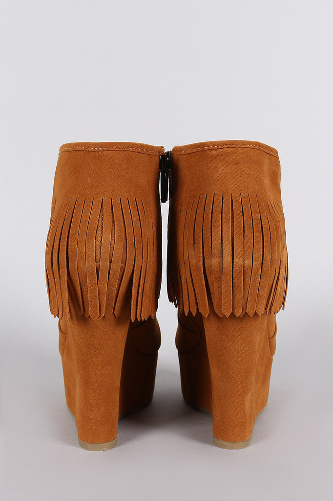 Bamboo Fringe Cuff Platform Wedged Booties