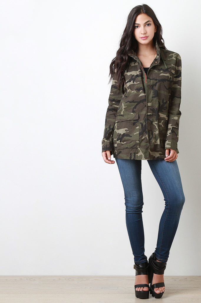 Camouflage Hooded Zipper Jacket
