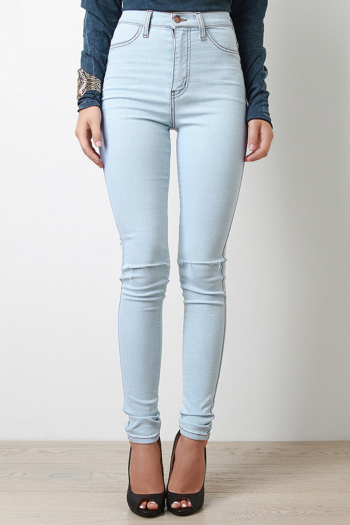 These trendy jeans features a high rise design, skinny taper cut legs, faux front pockets, working rear pockets, belt loops, zipper fly, and a single button closure. Accessories sold separately. Made in U.S.A. 62.5% Cotton, 23.9% Tencel, 21.1% Polyester, 1.5% Spandex.