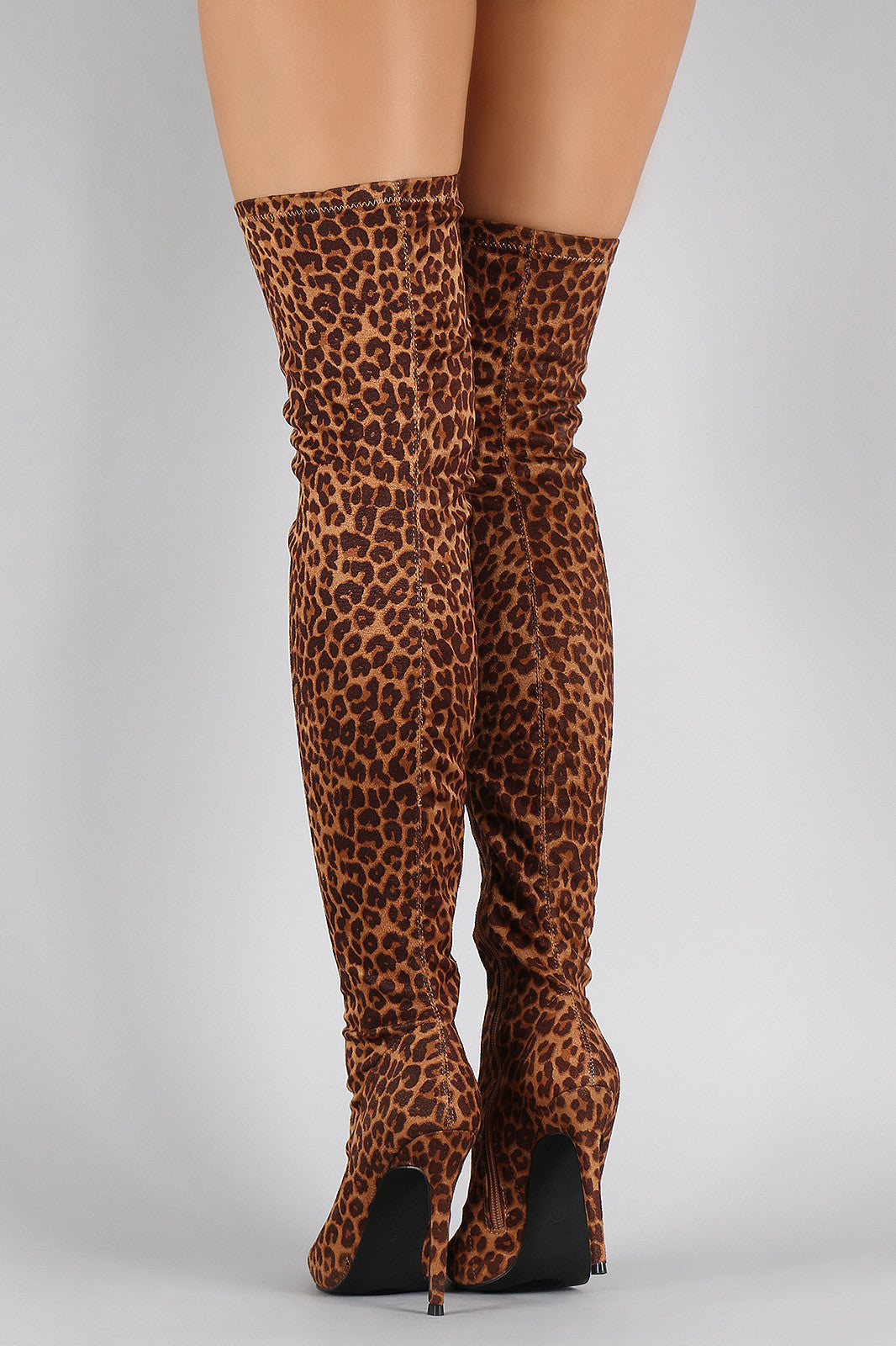 Liliana Leopard Pointy Toe Stiletto Over-The-Knee Boots