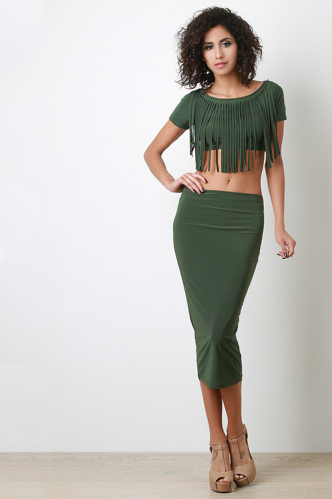 Stretchy Midi Pencil Skirt