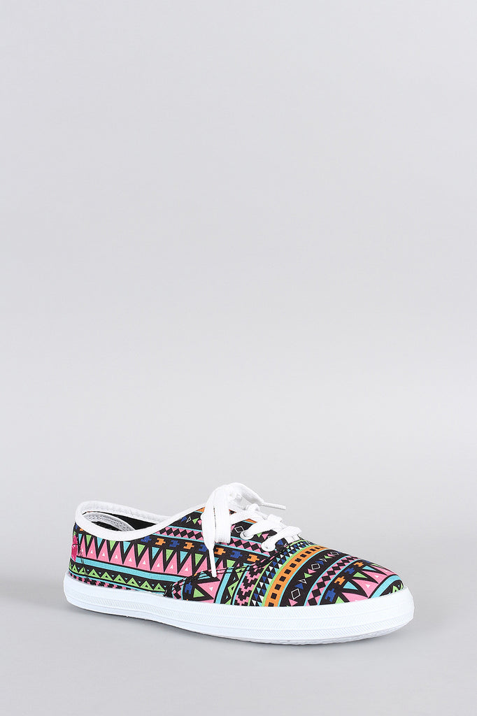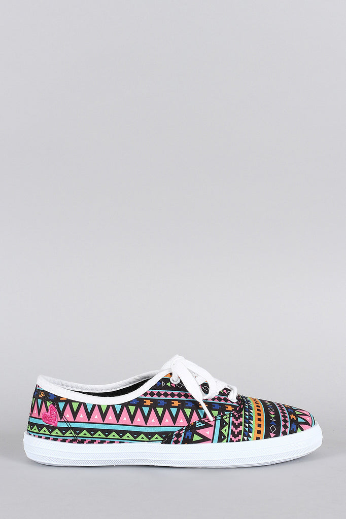 These fashionable sneakers feature a upper tribal print fabric, cushioned insole, and lace up closure.
