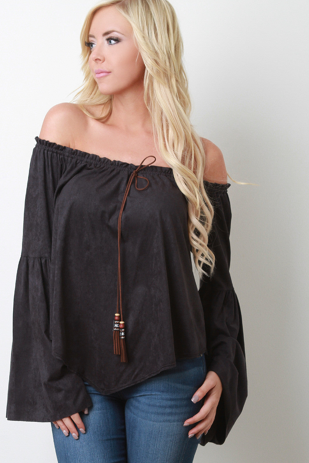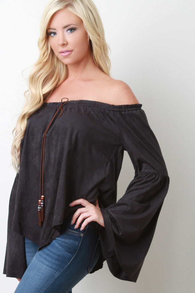 Bell Sleeved Off-the-Shoulder Peasant Top