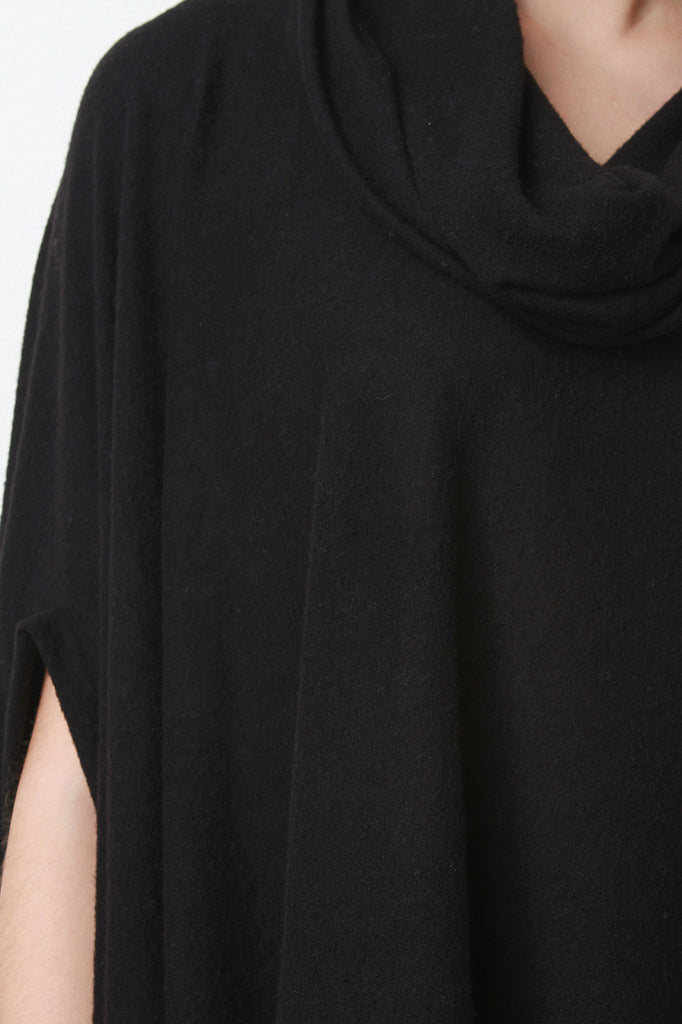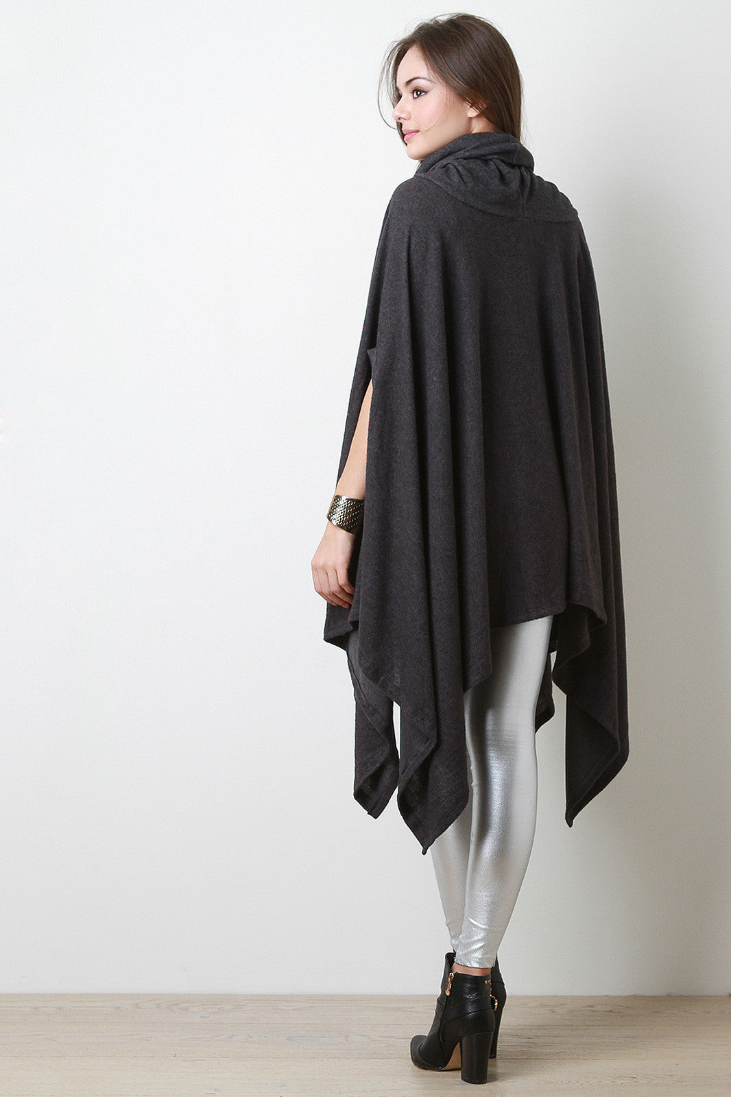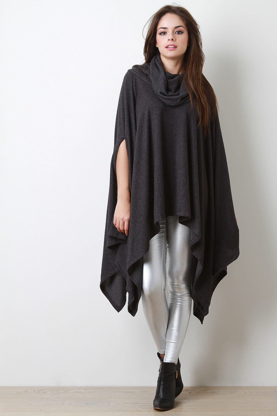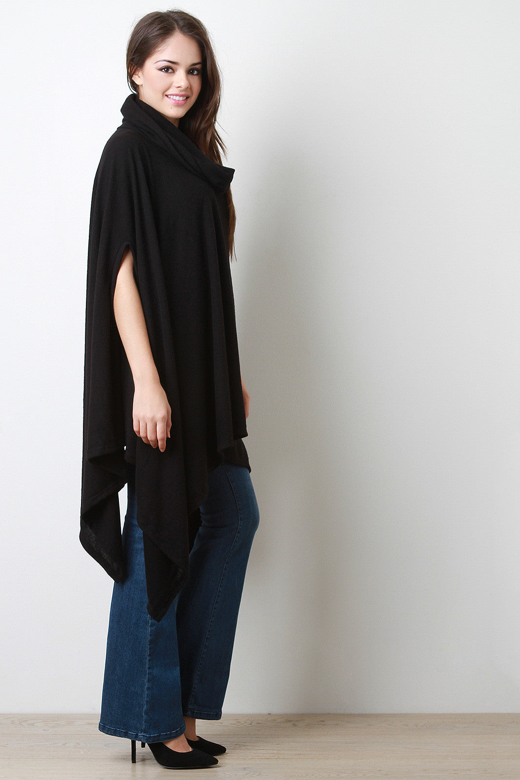 Cowl Neck Handkerchief Knit Poncho Maxi Top