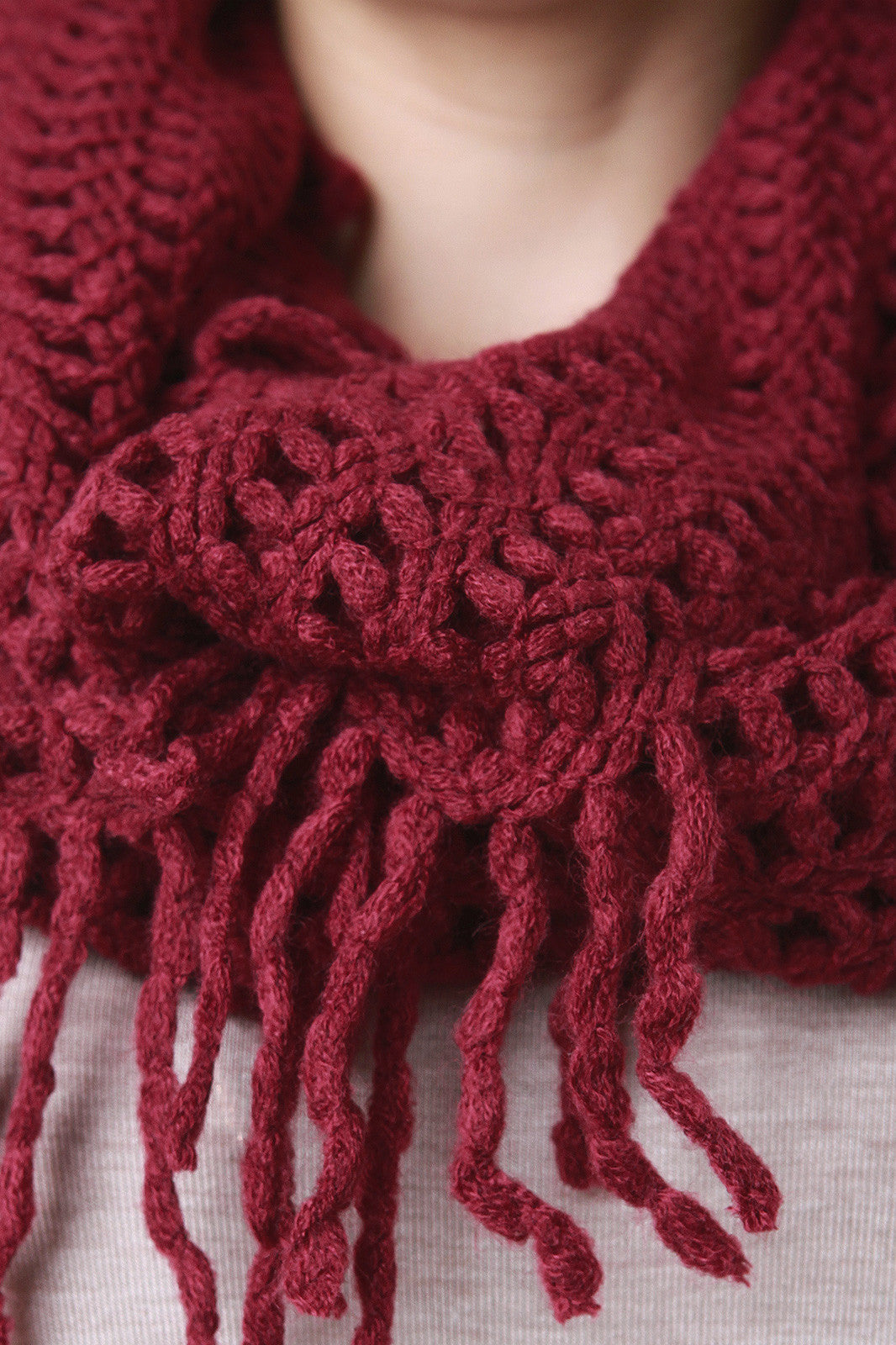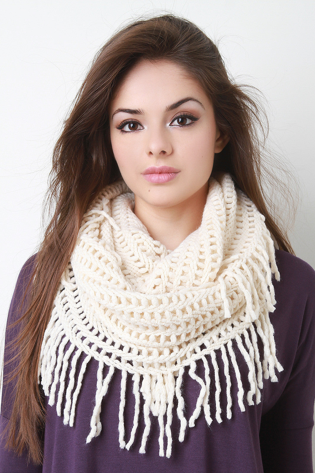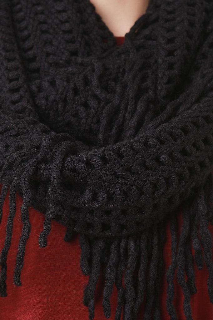 Open Knit Fringe Infinity Scarf