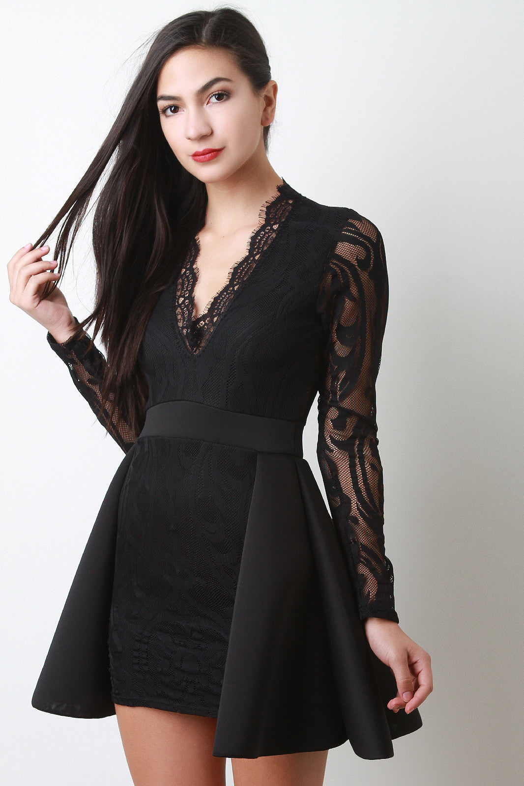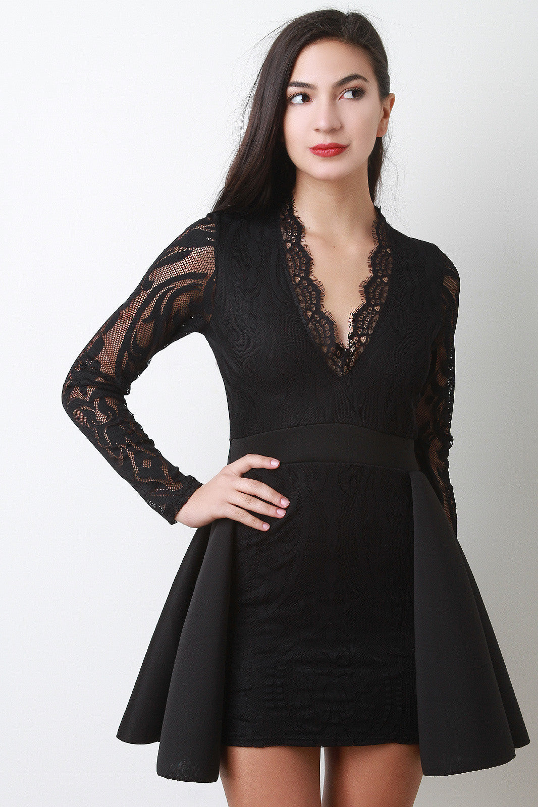 Scuba Peplum V-Neck Lace Dress