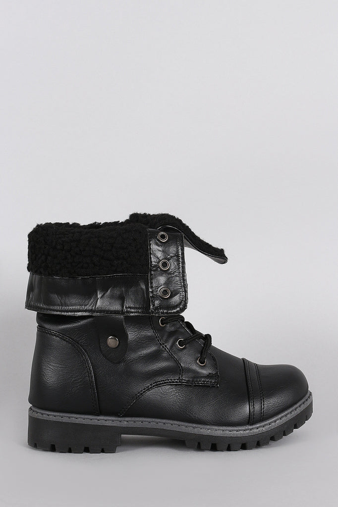 Shearling Foldover Cuff Lug Sole Combat Boots