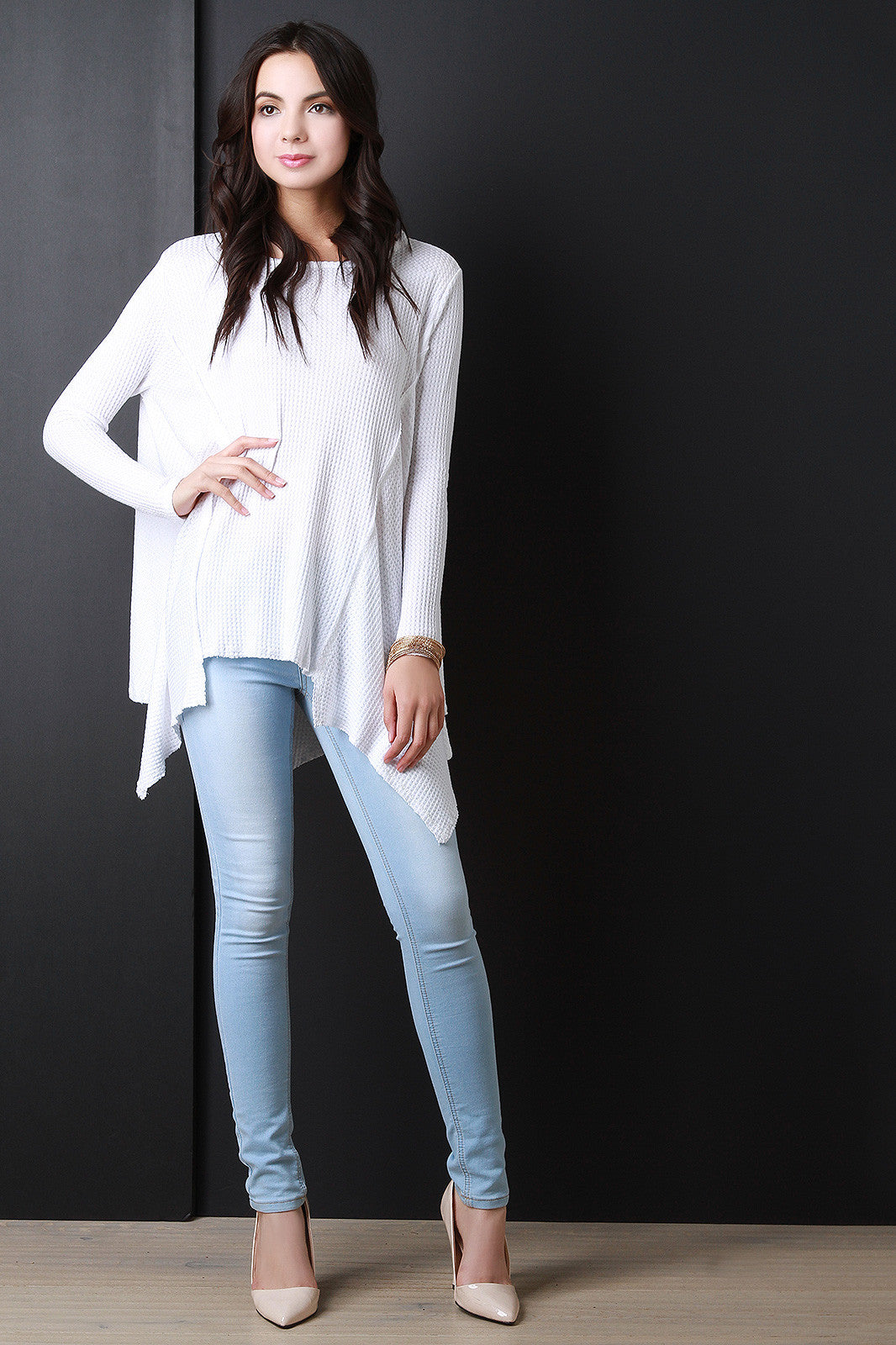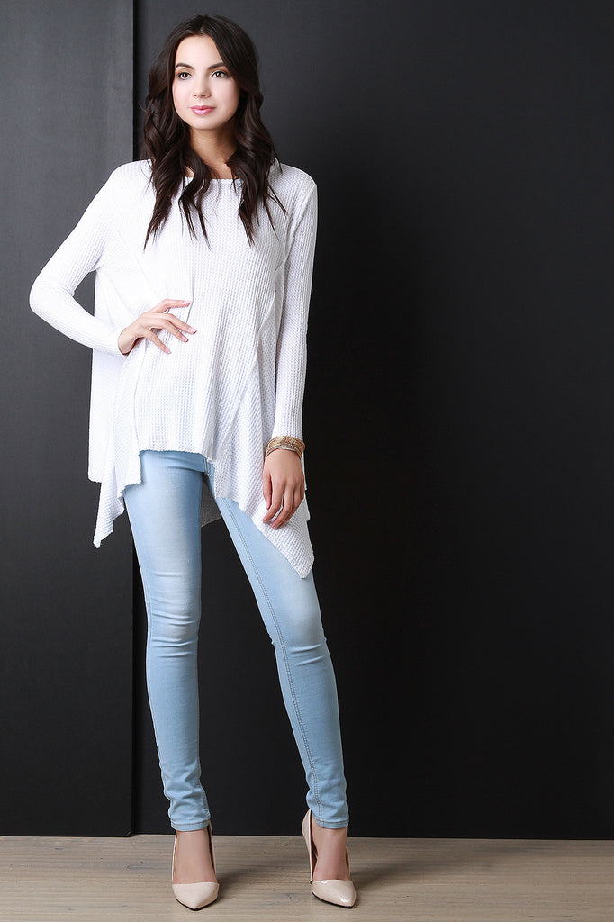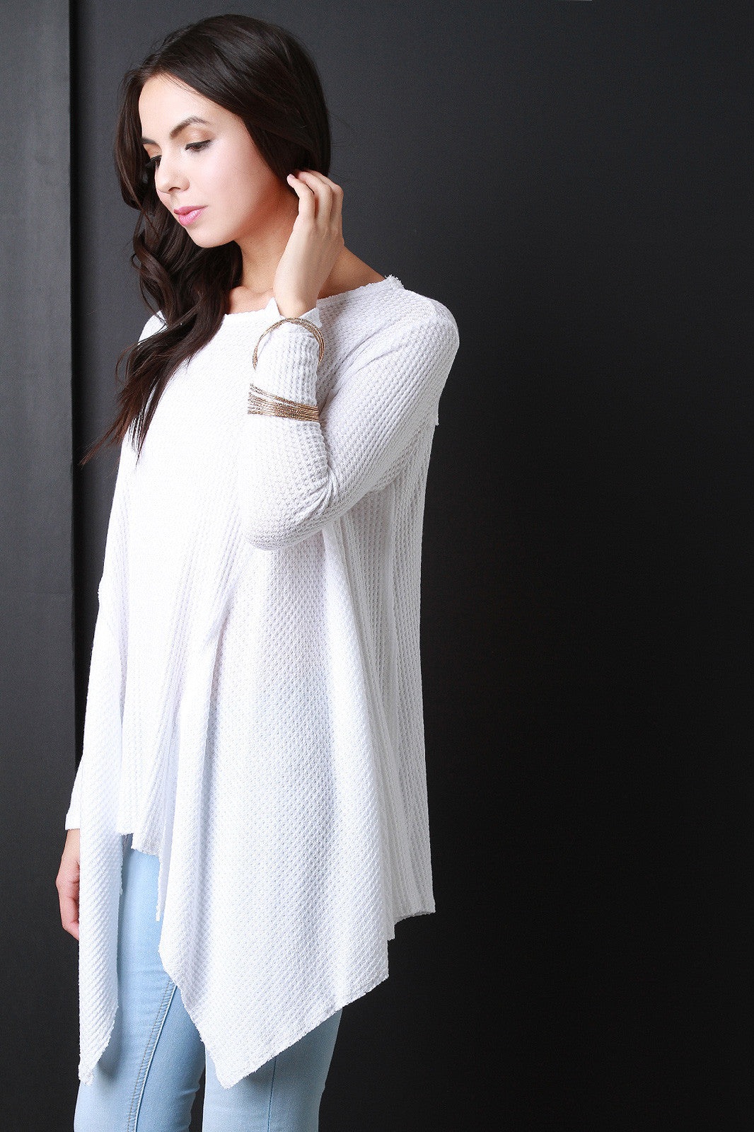 This thermal top features soft waffle knit, round neckline, long sleeves, and sharkbite hemline. Accessories sold separately. Made in U.S.A. 96% Rayon, 4% Spandex.